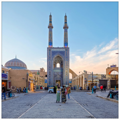 20231102_170714 亚兹德阿米尔恰赫马格广场 阿米尔恰赫马格广场是伊朗亚兹德城市地标建筑,这里是亚兹德最大、最美的建筑群落,南面是阿米尔恰赫马格清真寺(Masjid-e Amir Chakhmag,也被称作Masjid-e Nov)。广场前的草地,是人们休闲的好去处。广场正中的拱形门下,是一个不大的巴扎。