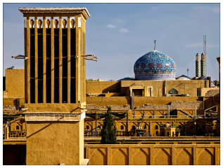 亚兹德老城 老城,学名亚兹德历史城区(Historic City of Yazd),位于伊朗中央高原的中心地带,在伊斯法罕东南270公里处,离香料与丝绸之路不远的地方。亚兹德古城是人类利用有限的资源在沙漠中幸存下来的鲜活例证。城市的用水是通过坎儿井系统被引到城市。在众多传统土制建筑的城市被现代化摧毁时,亚兹德却有幸置身于这一潮流之外。这座城市及其传统的坎儿井系统、集市、浴室、清真寺等建筑抵住了时间的考验,完好的保存下来。